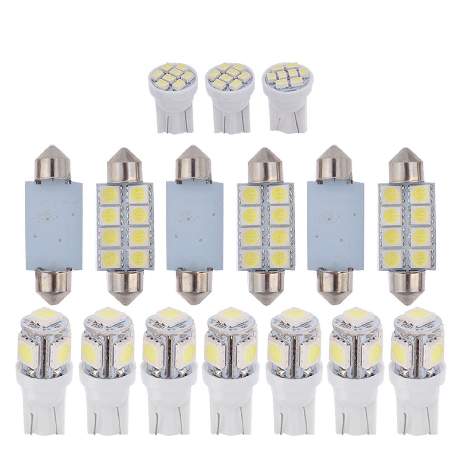 This package contains 16 pieces LED lights (with extra two free LED lights), which are much brighter than the stock yellowish tungsten lamps.