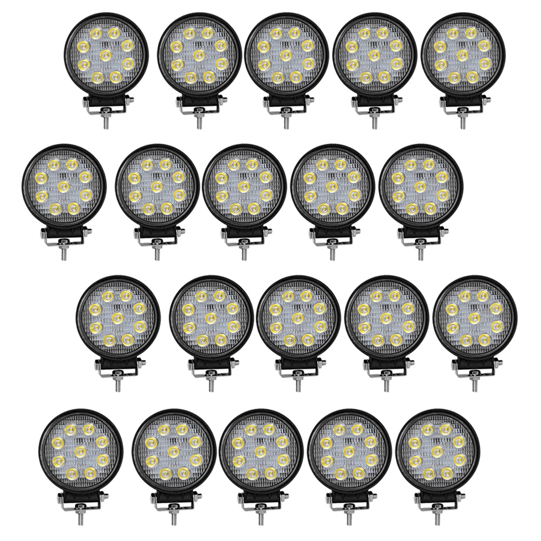 20x 4inch 27W Round LED Work Lights Pod SPOT Beam Offroad Fog Driving Light 12V Fit for Off Road Vehicles SUV Trucks UTE ATV Engineering Vehicles